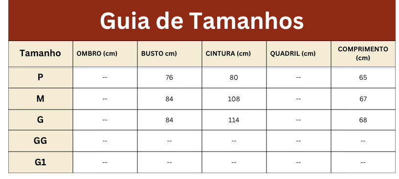 Tabela de Medidas